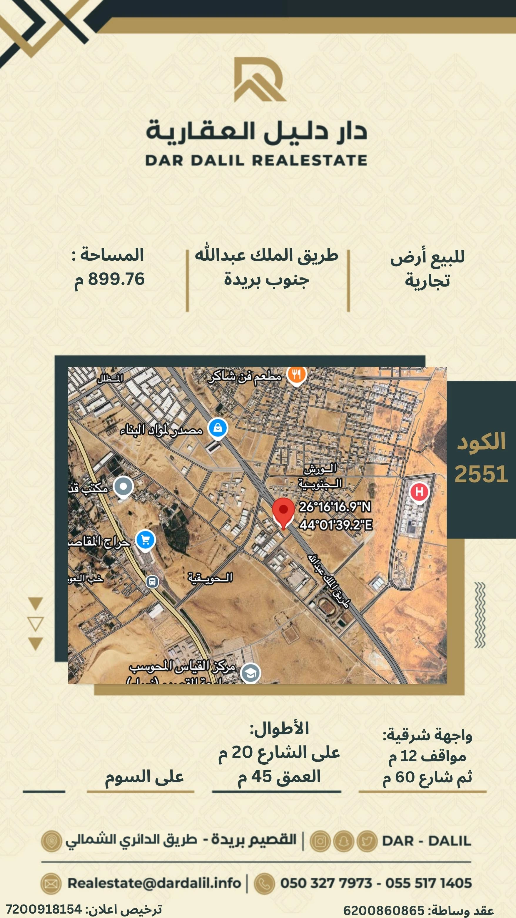 العرض 4.5 م - العمق 16م