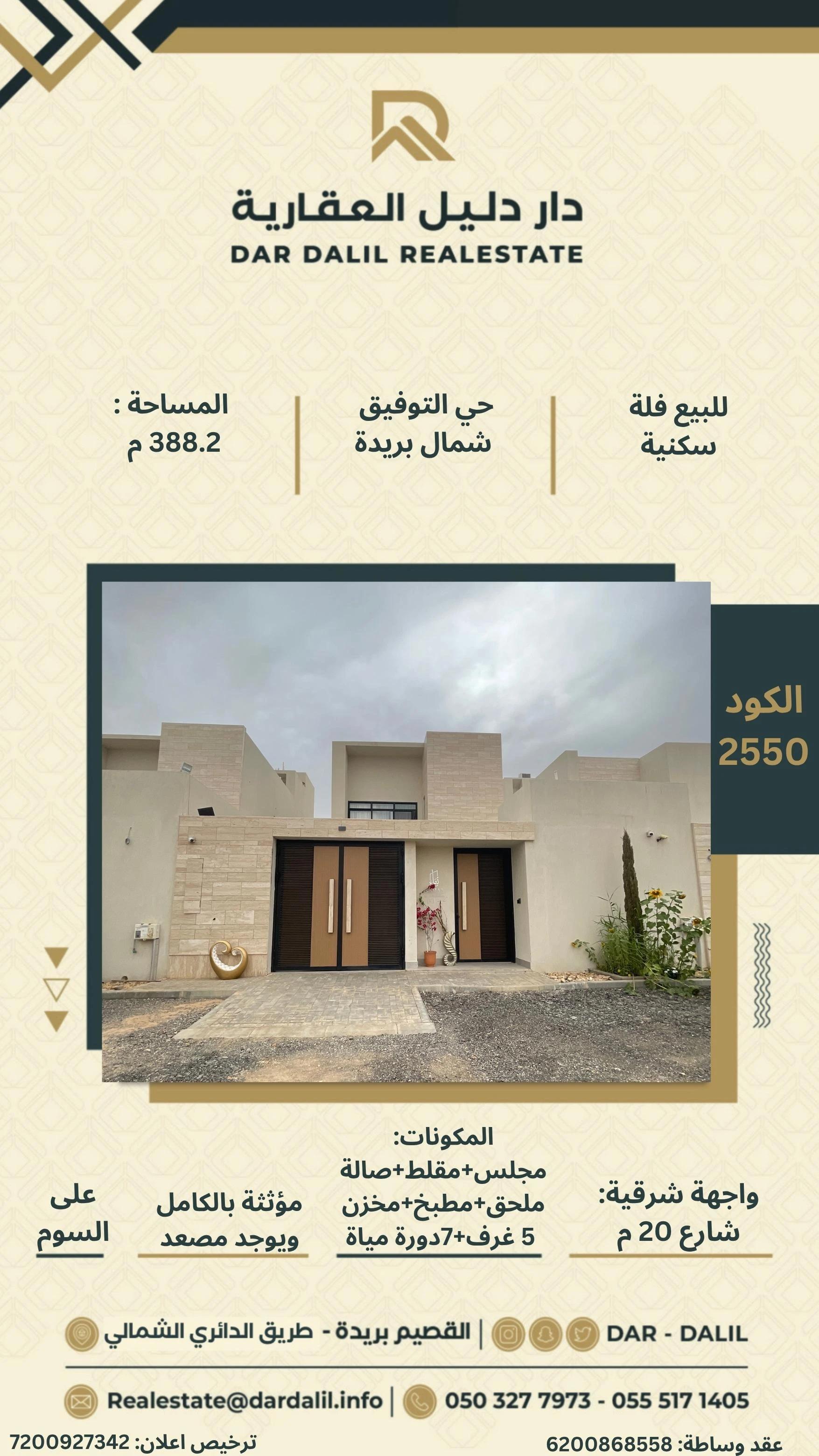مجلس + صالة + مقلط + مطبخ + مستودع +ملحق + 5 غرف نوم + 7 دورة مياة