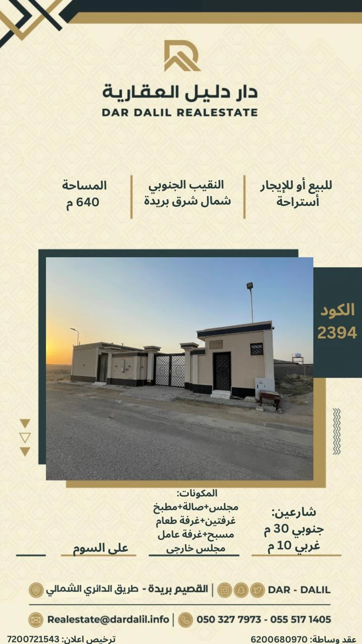 الأطوال: على الشارع 20 م العمق 32 م