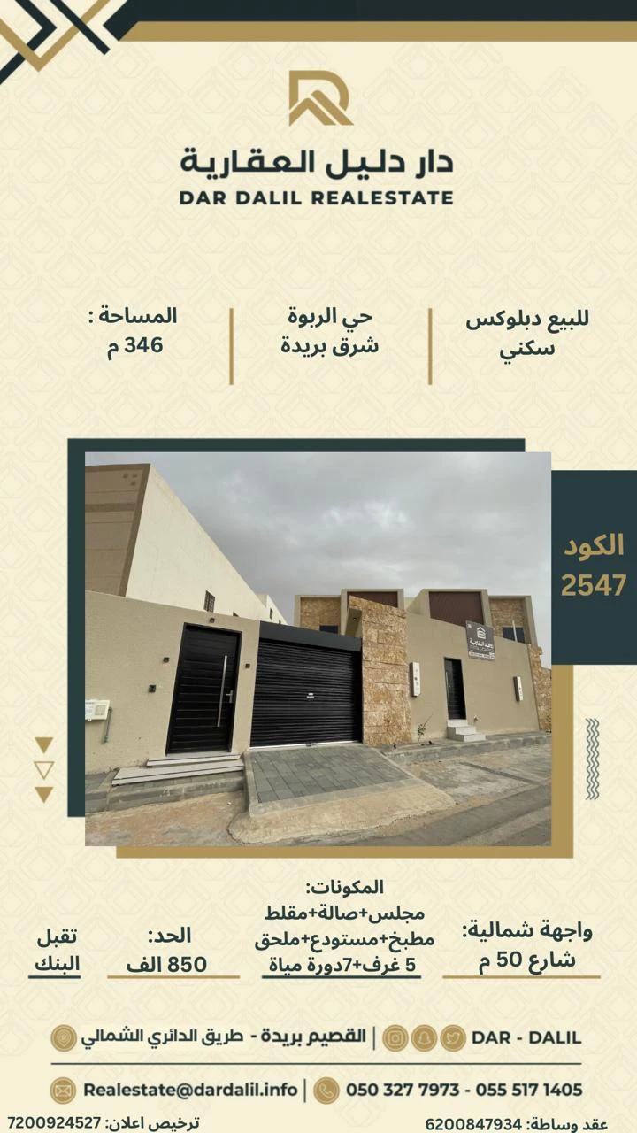 الوجهه: شارعين: شرقي 30 م جنوبي 20 م