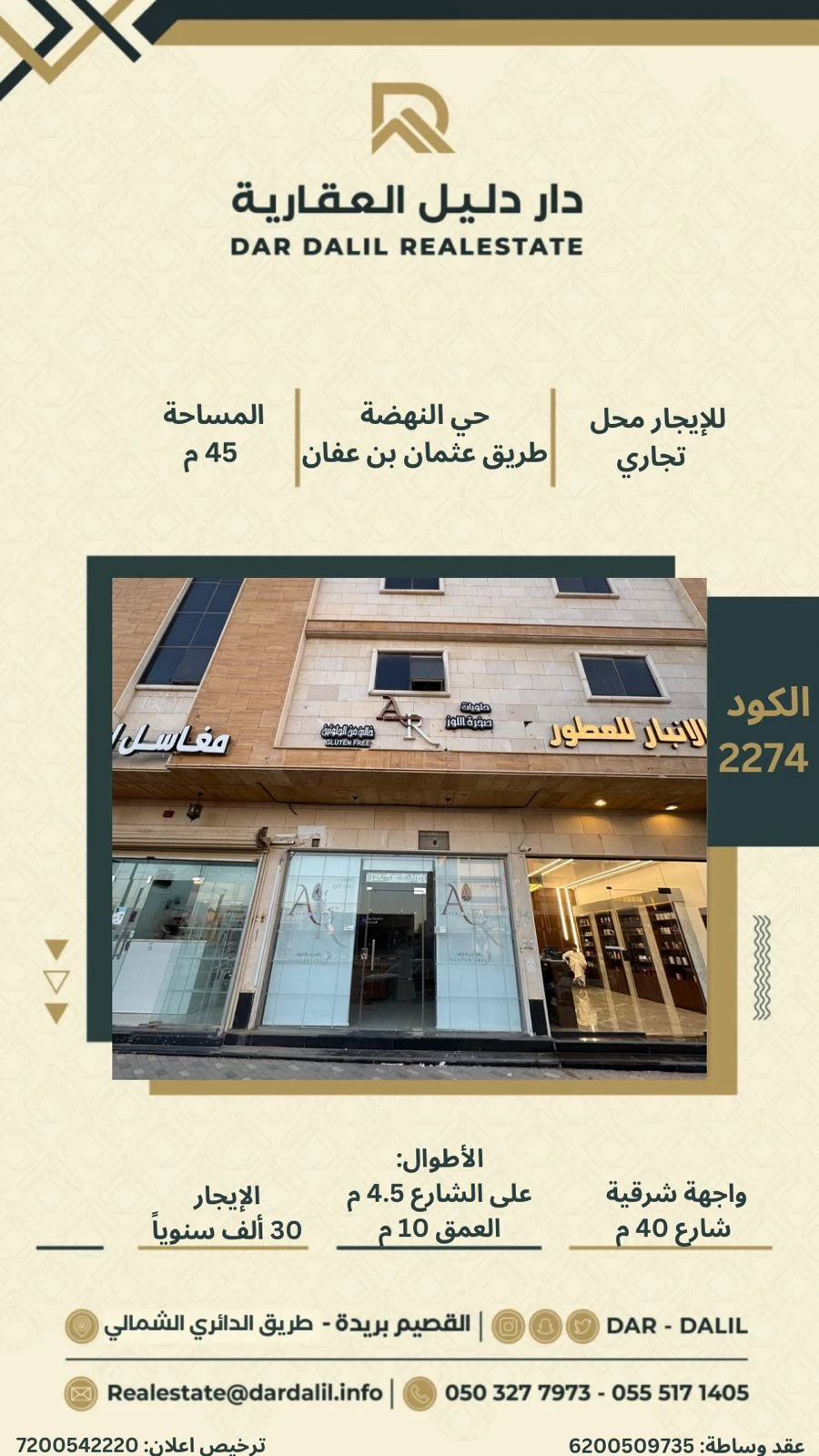 شارع شمالي 40 م - شارع غربي 30 م - شارع جنوبي 15 م