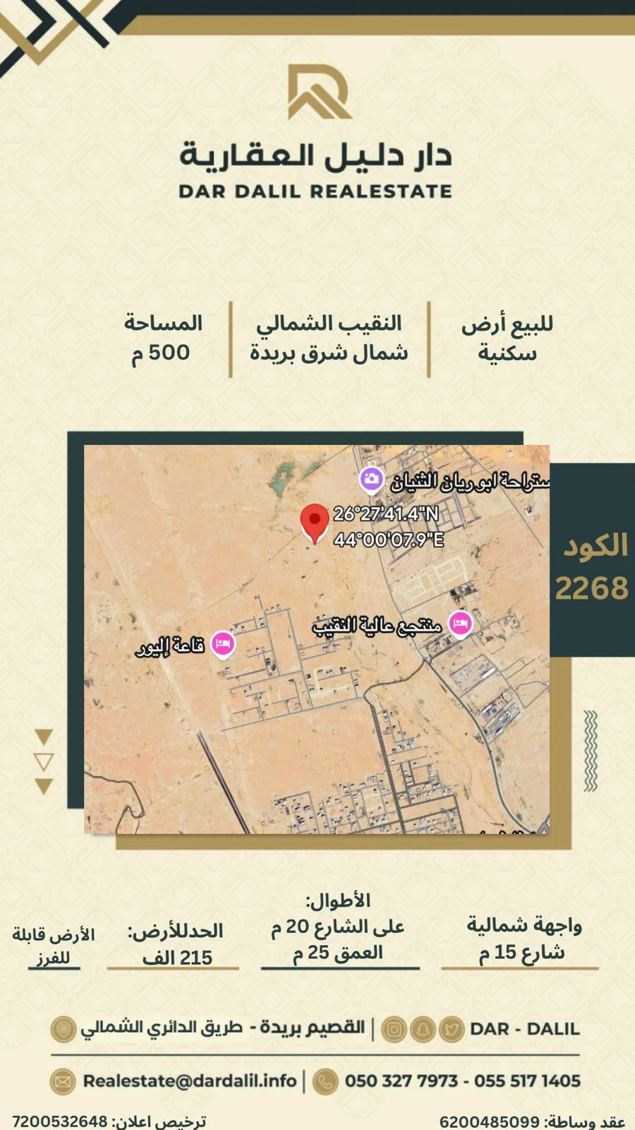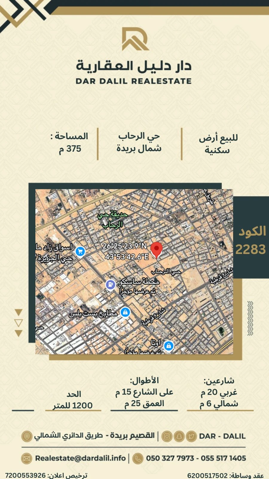 شارعين: غربي 20 م- شمالي 6 م