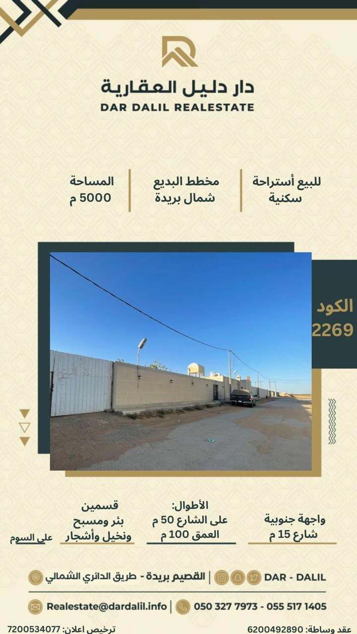 على الشارع 50 م - العمق 100 م