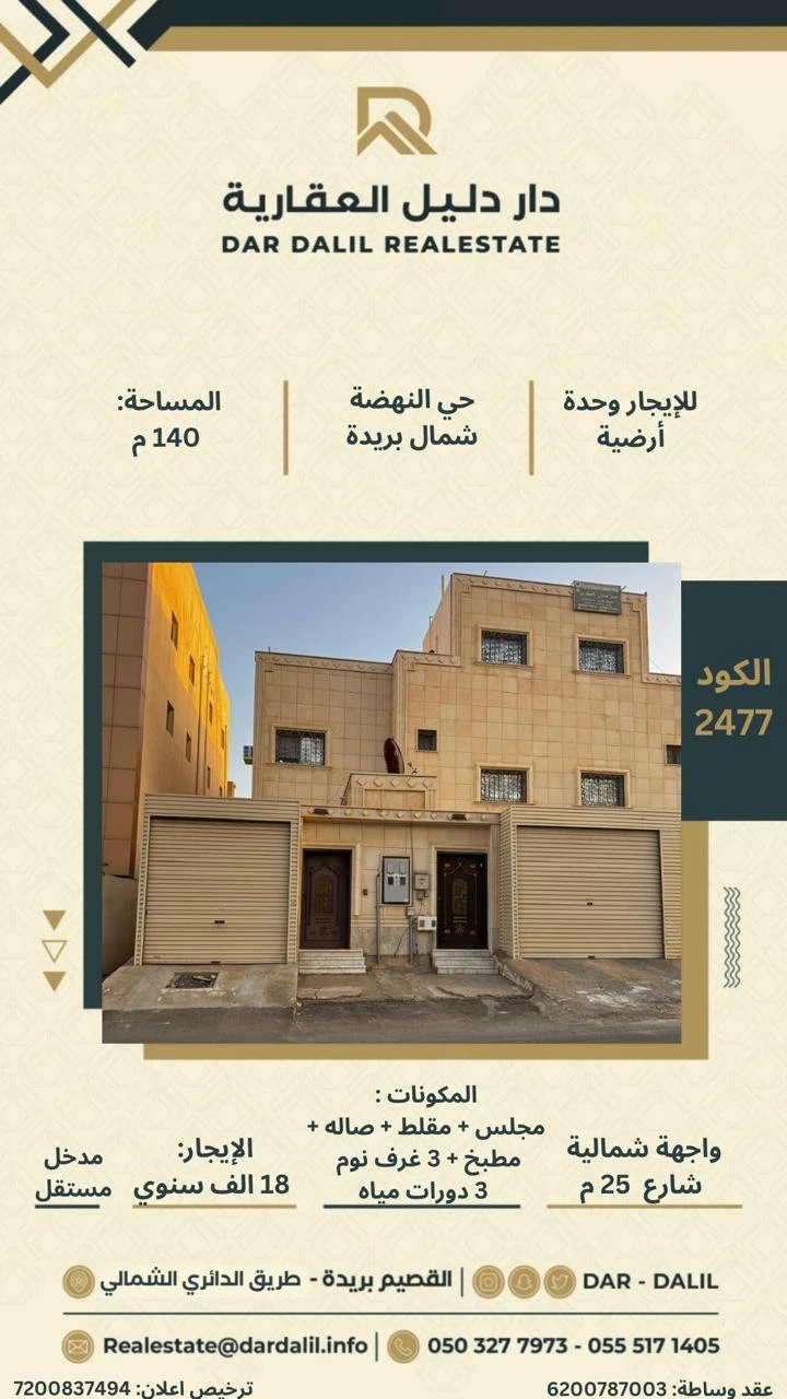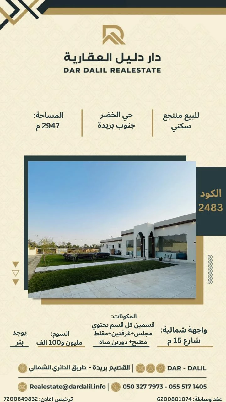 مجلس + مطبخ + صالة + مقلط +3 غرف نوم + 3 دورة مياة