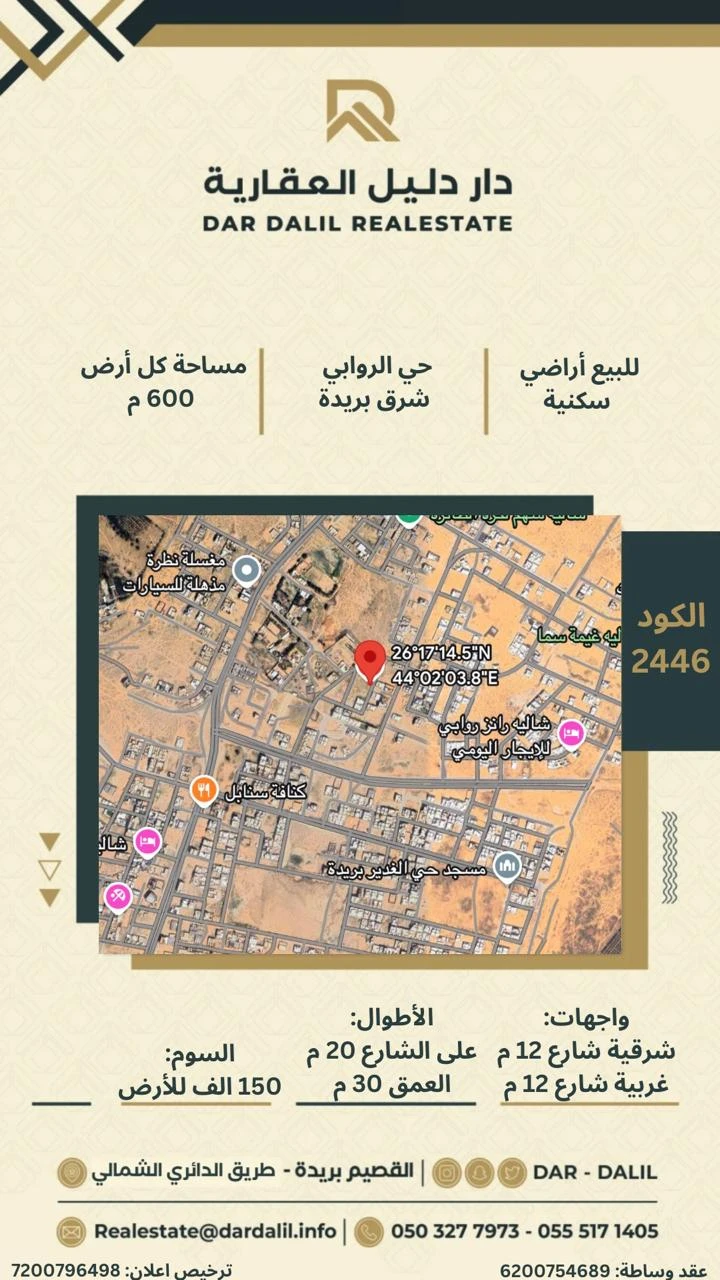 العرض 6 م - العمق 26 م