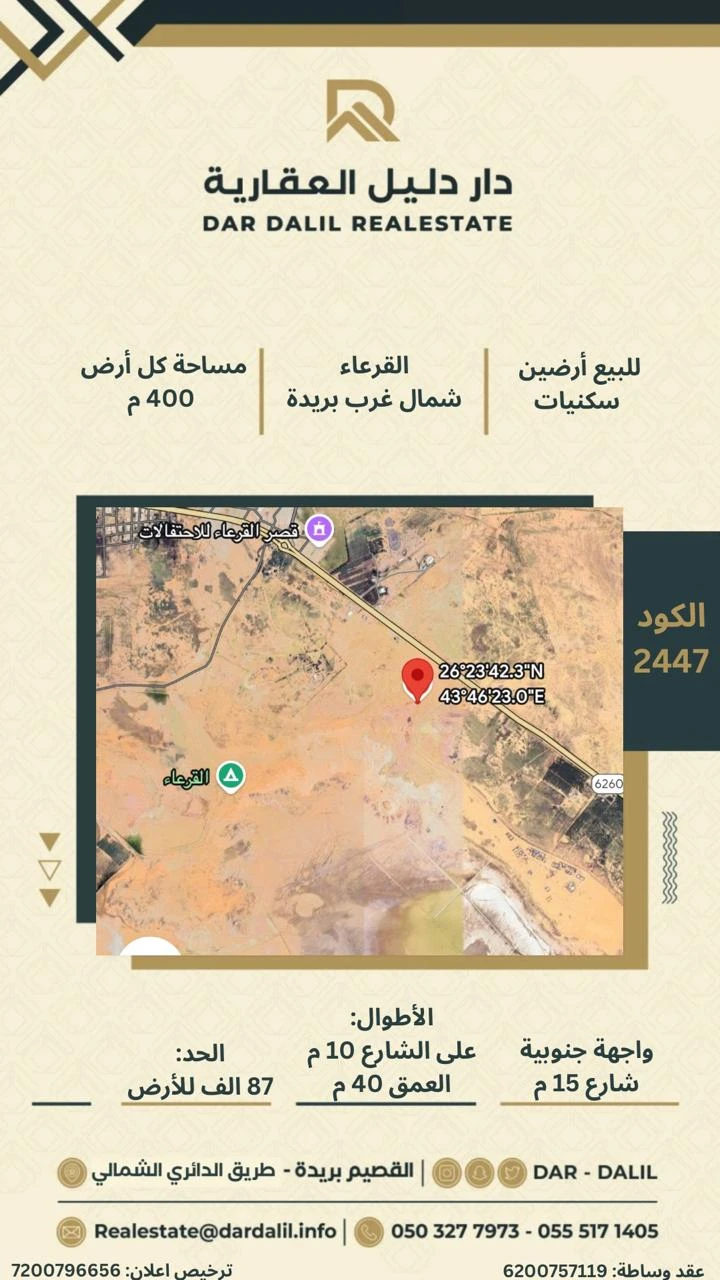 المساحة للأرض 400 م