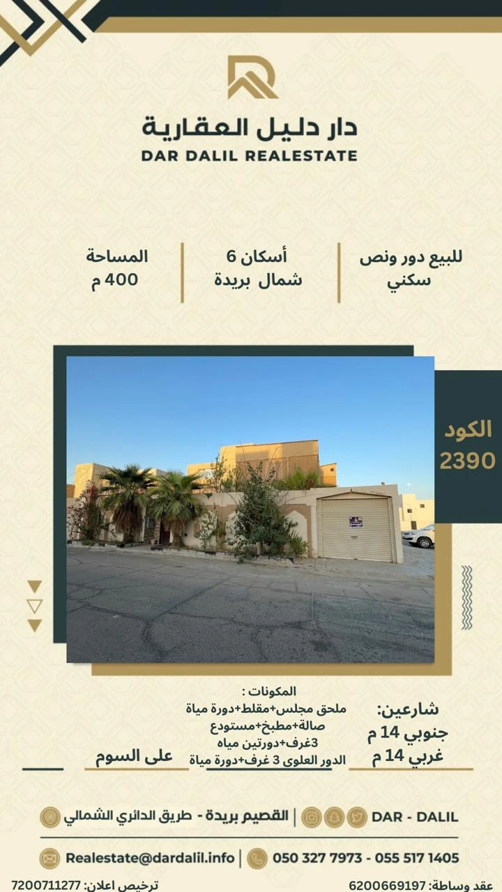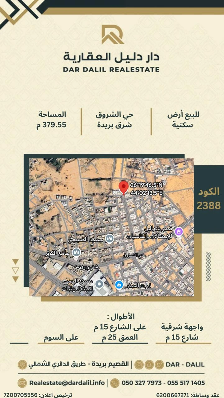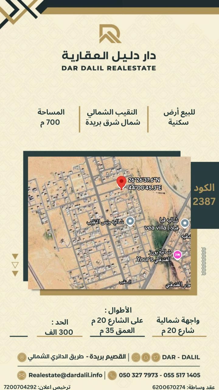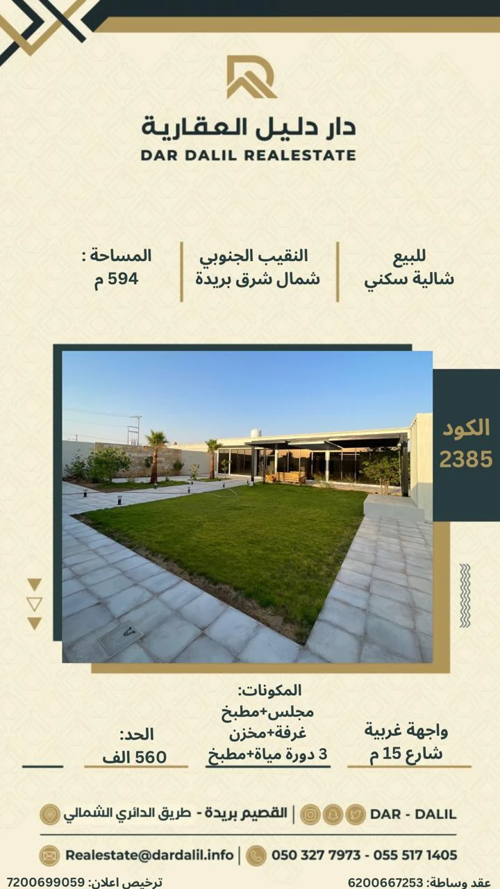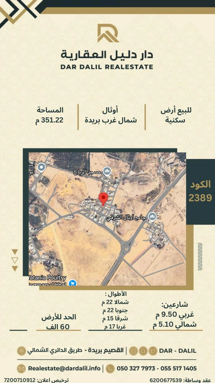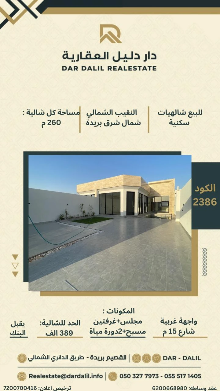 شارعين: غربي 9.50 م شمالي 5.10 م