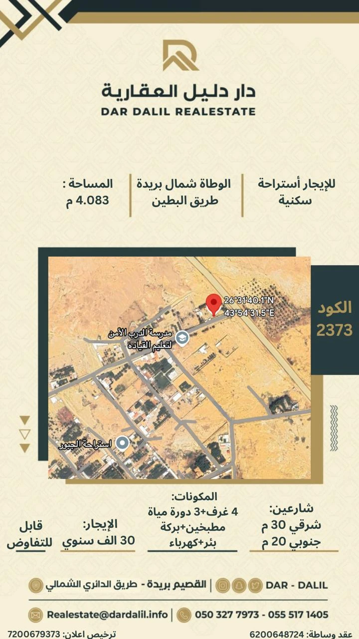 4 غرف + 3 دورة مياة + مطبخين +بركه +بئر +كهرباء